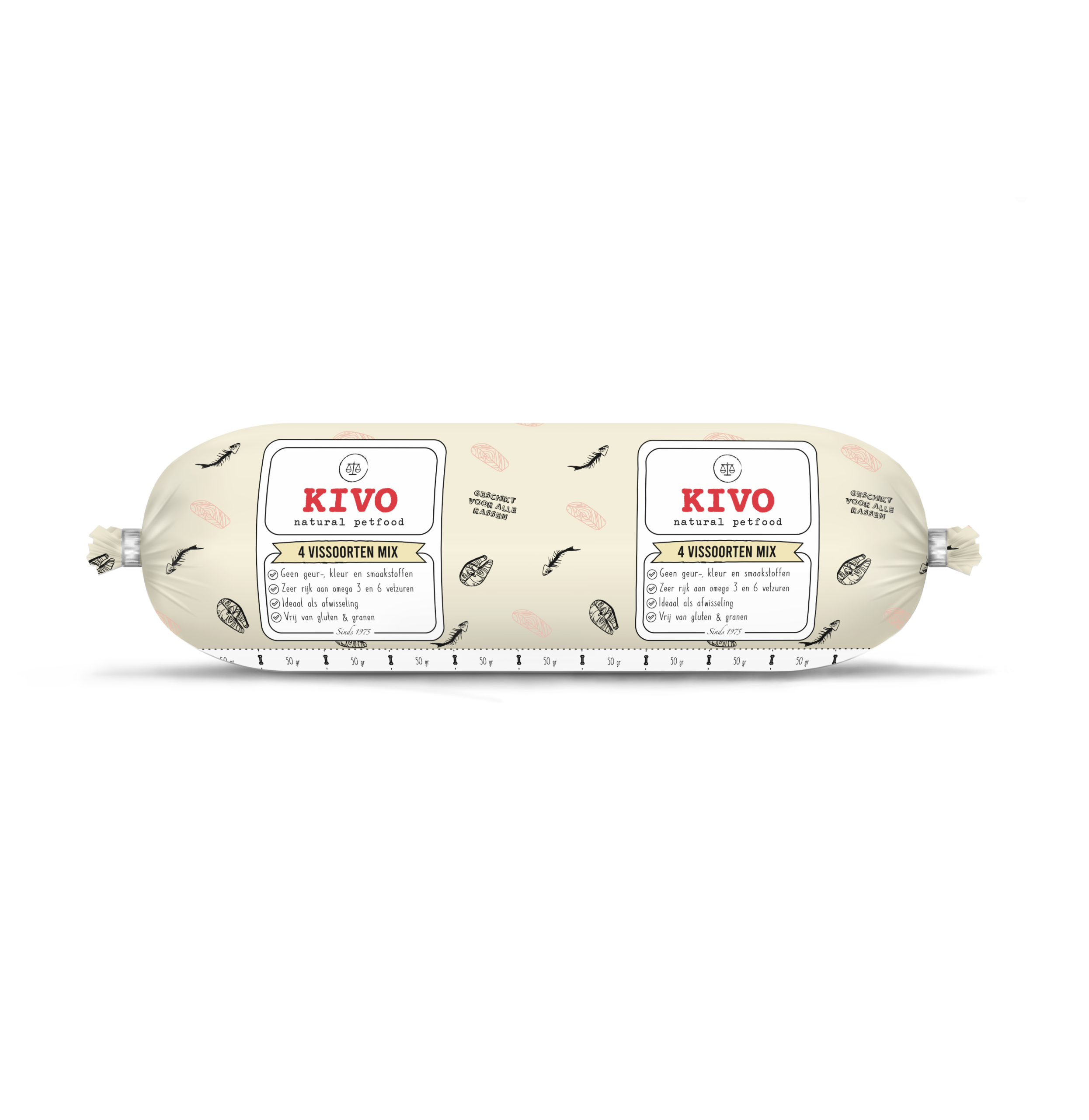 4 Vissoorten mix is een verse diepgevroren maaltijd die geschikt is voor elke hond. Het bestaat uit 100% verse vis .De mix bevat sardine, paling, zalm en makreel en zit bomvol omega 3 vetzuren. Deze vetzuren zijn goed voor huid, vacht, gewrichten en hebben een ontstekingsremmend effect. Ook is het goed voor hart en bloedvaten. Het advies is om 1 x in de week vette vis te voeren. Het is geen complete maaltijd. Wel is het zeer geschikt om een gezond en afwisselend voedingspatroon te creëren.