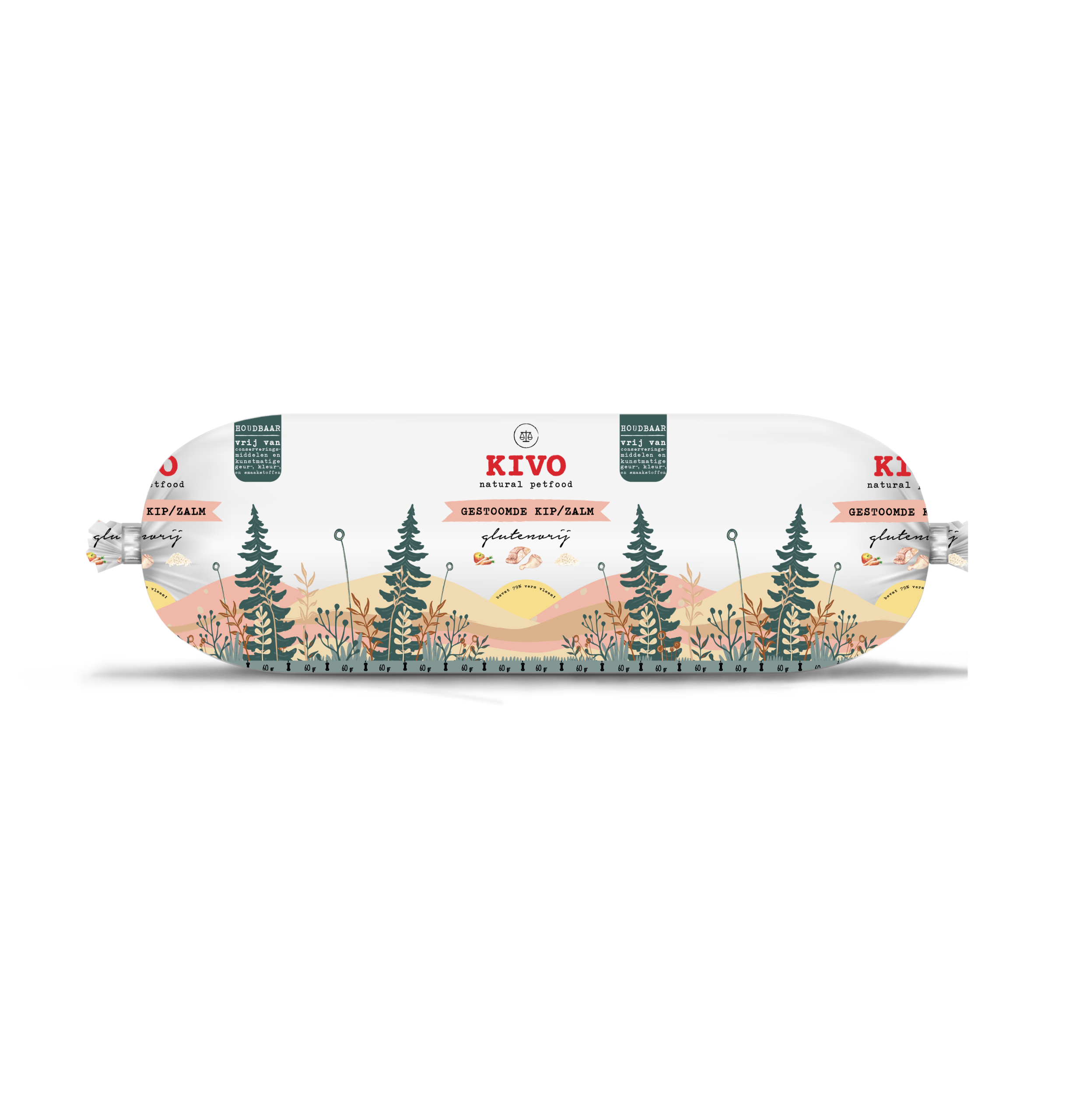 Deze voeding is een zacht gestoomde complete maaltijd die geschikt is voor elke hond, zowel voor volwassen honden als puppy’s. Deze voeding bevat kippenvlees en zalm.