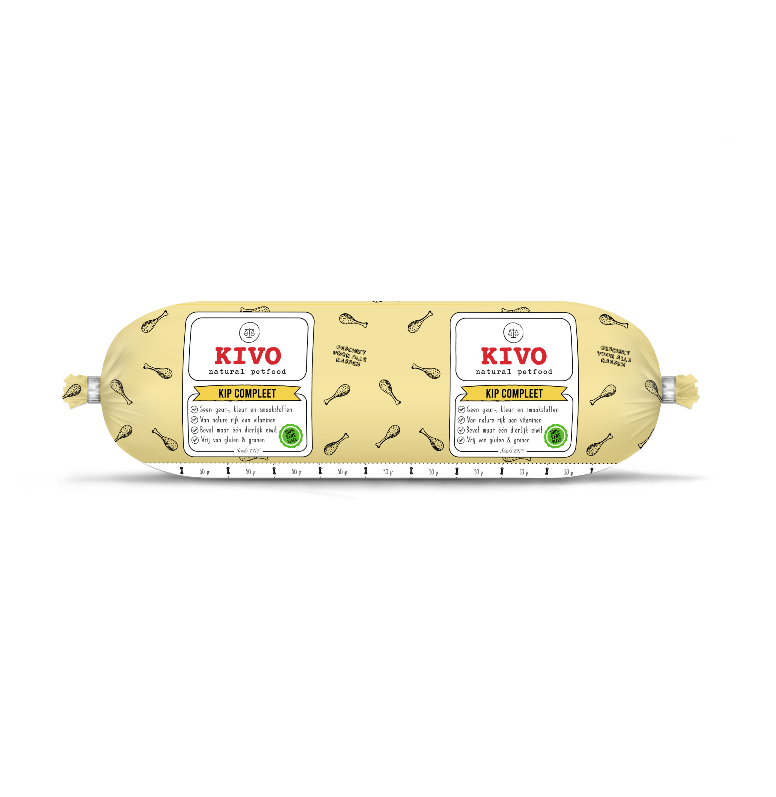 Deze complete maaltijd bestaat voor 100% uit vers kippenvlees.